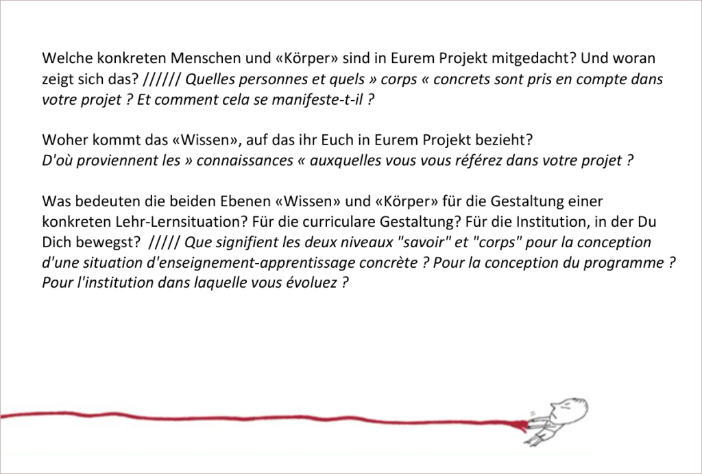 «Wir laden Euch heute zu einem kollektiven Prozess des Nachdenkens ein. Dabei wollen wir einen Moment erreichen, in dem wir auf blinde Flecken stossen. Die Auseinandersetzung mit dem Thema und der Komplexität, die der Begriff Diversität mit sich bringt, kann dazu führen, dass wir vor lauter Ohnmacht in eine gewisse Handlungsunfähigkeit geraten und in einer Art Schockstarre verharren. Um dieses schwierige Gefühl zu vermeiden, wird der Diskurs rund um Diversität/Vielfalt allzu häufig auf sehr geradlinigem Weg auf eine Zauberformel des ‹Managen von Vielfalt› reduziert. Wir können und wollen heute aber keinen Werkzeugkasten verteilen und auch gar nicht erst behaupten, dass es diesen gibt – denn Diversität ist nicht ein ‹Problem›, dass es zu ‹beheben› gilt. Vielmehr wollen wir euch einladen, über die Fragen, die wir wir uns stellen, über die Aha-Momente, die Stolpersteine, die Bilder etc. auf die Suche zu gehen, nach blinden Flecken – nach blinden Flecken, die uns den Blick auf unsere eigenen Privilegien verstellen – die uns den Blick verstellen auf Anfragen von aussen und auch auf das Entdecken der Lust auf Lernen und Verlernen neuer und anderer Perspektiven.»